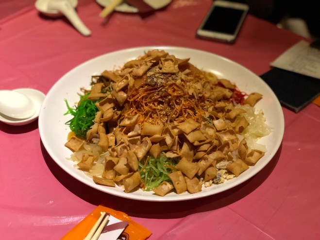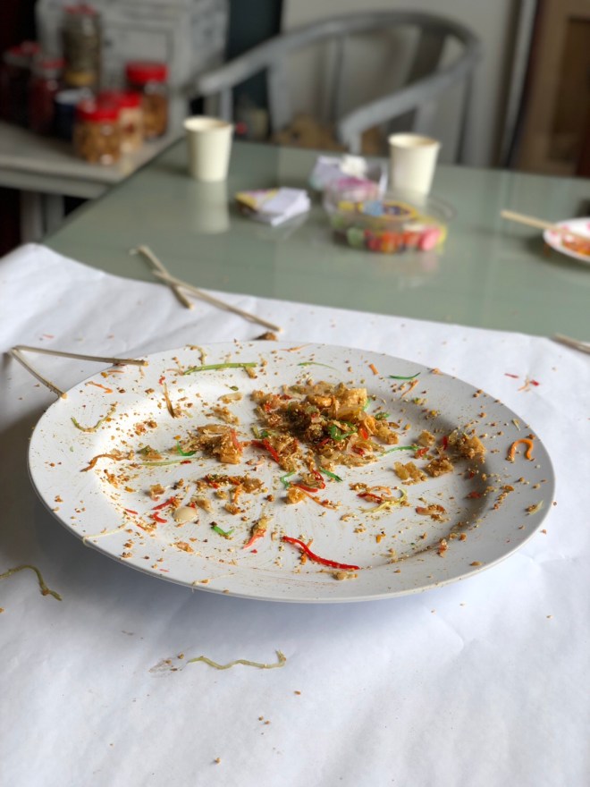 The aftermath – everyone cleaned out the yusheng! πŸ‘πŸ»
