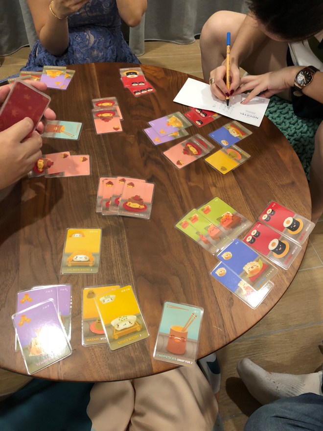 After dinner, we had some games and one of them is the Sushi Go. I like this game. Very fun!