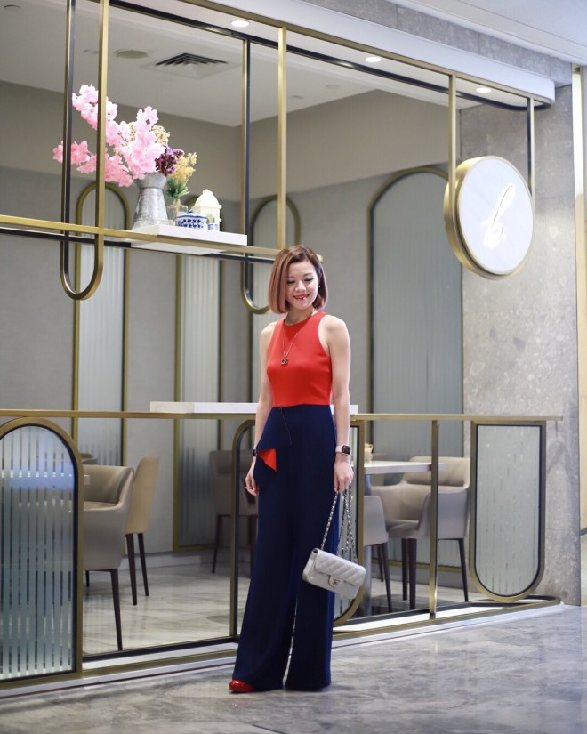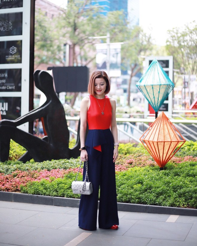 For Day 3, I picked Love, Bonito Jayahe Cascade Ruffle Colour Block Jumpsuit. Taken outdoor at Paragon.